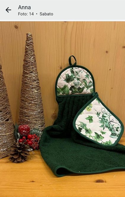 Colere verde scuro la spugna con stampa edera in alto e la presina stampata con edera.